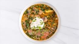 Деревенский суп с говяжьими рёбрами, овощами и сметаной