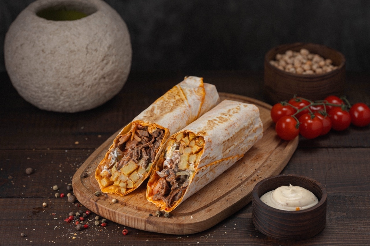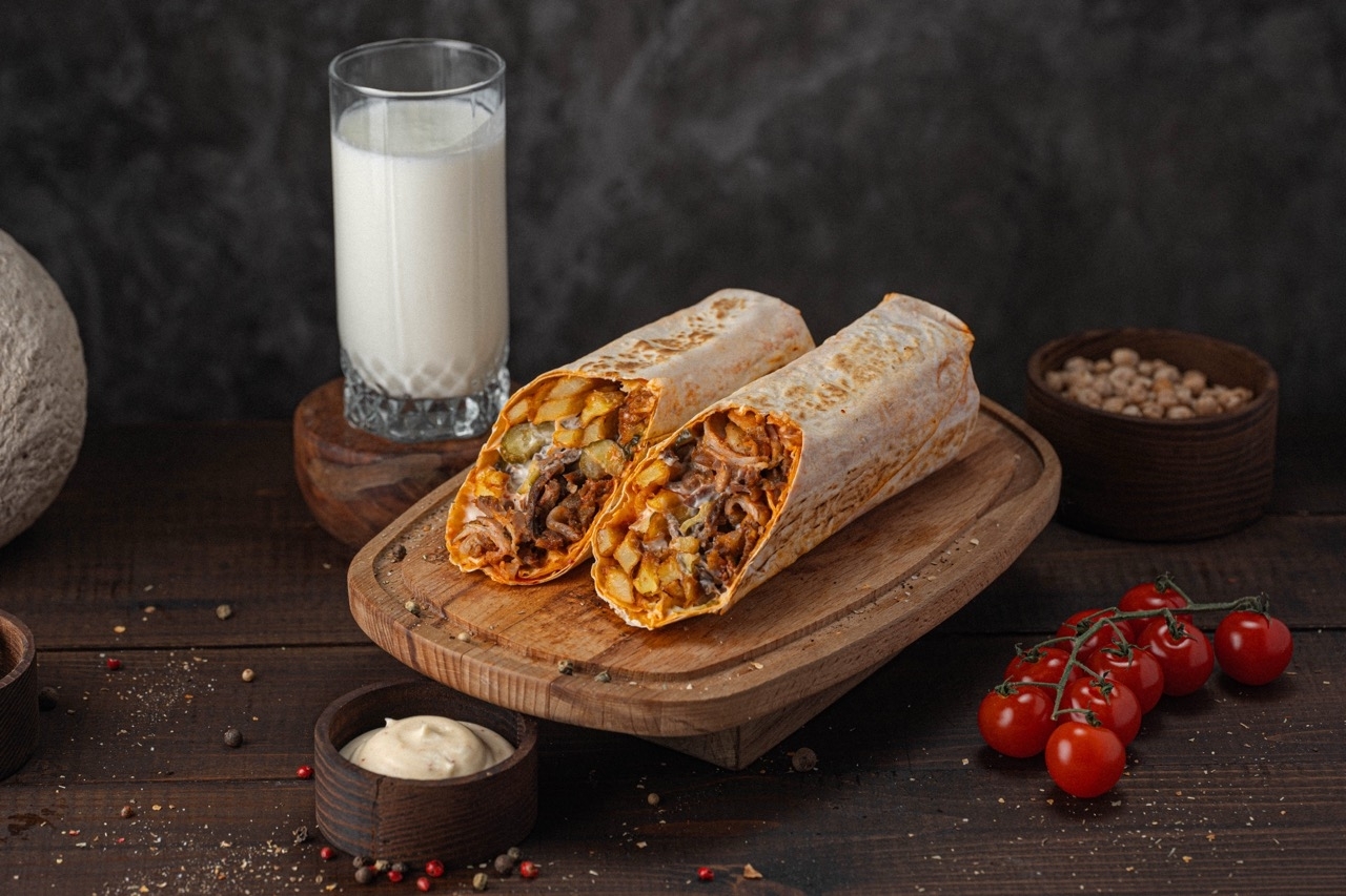 Тонкий лаваш,приправленный лазджаном, который придает изысканный и пикантный вкус блюду. Маринованное халяльная говядина, легкий ароматный белый соус,прекрасно дополняющий своим вкусом,и соленые огурцы, которые как нельзя кстати придутся по вкусу каждому.