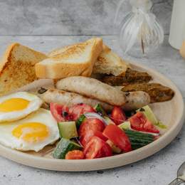 Яичница с колбаской и салатом (250г)