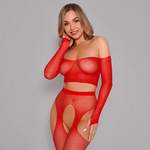 Комплект Эротический Amor El Топ И Чулки С Поясом В Сетку Со Стразами, Красный, S/l