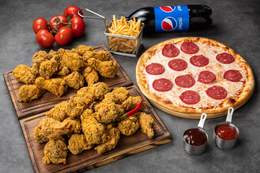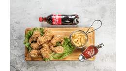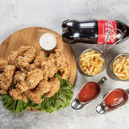 Чикен (20 шт.), Пепперони (33 см, 1 шт.), картофель фри (1 шт.), соус (2 шт.), Coca-Cola (1 л)
