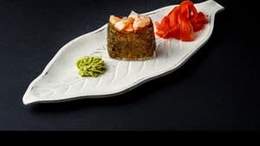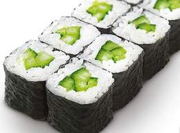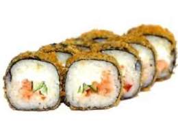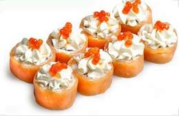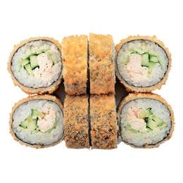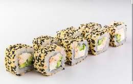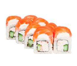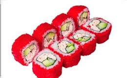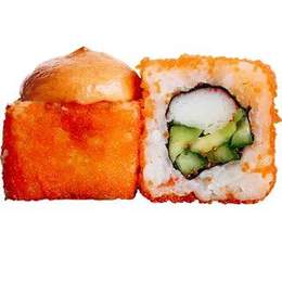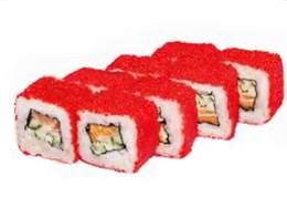Рис, нори, огурец, краб-крем, икра- тобико, лосось