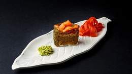 Рис, нори, сыр Cremette, лосось, стружка тунца, огурец