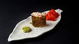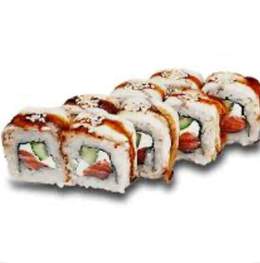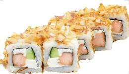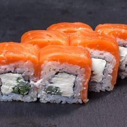 Рис, нори, сыр Cremette, огурцы, лосось, унаги соус, кунжут, секретный соус