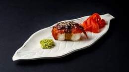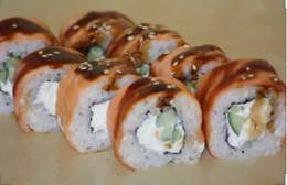 Рис, нори, огурец, сыр Cremette, угорь, унаги соус, кунжут