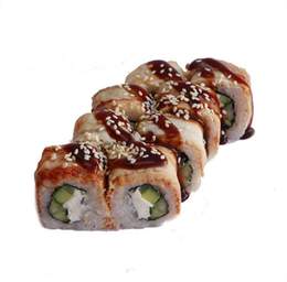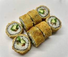 Рис, нори, огурец, краб-крем, икра-тобико, унаги соус, крем-соус