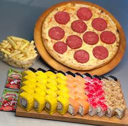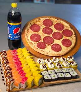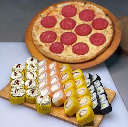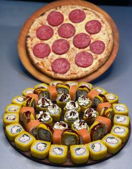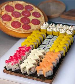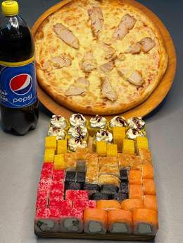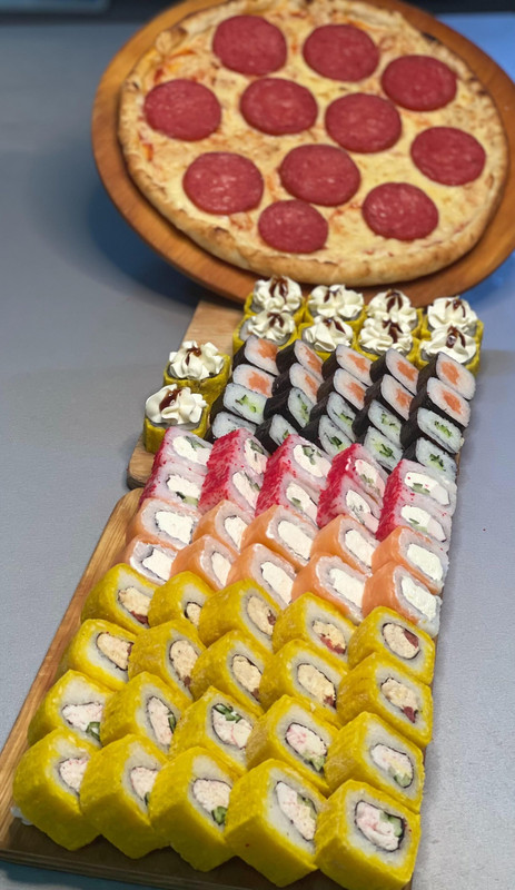 Новый сет «Фортуна»70 ролл + Пепперони и Маргарита Кола в подарок Филадельфия 10шт Калифорния 10шт Сяке темпура 10шт Американо 10 шт Цезарь 10шт Кани жареный 10шт Каппа маки 10шт