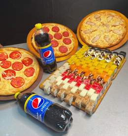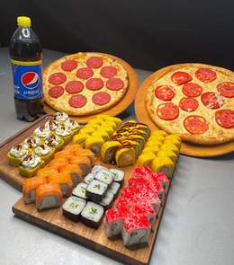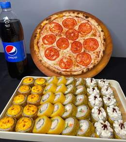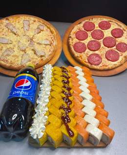 сет «Фокус»60 шт ролл + Пепперони и Маргарита Пепси в подарок Филадельфия 10шт Калифорния 10шт Спайси 10шт Сяке темпура 10шт Цезарь 10шт Каппа маки 10