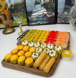 Сет «Корпоратив» 100 шт16300 тг Филадельфия 10шт Калифорния 10шт Дракон 10шт Чиз ролл 10шт Цезарь 10шт Бонита 10шт Сяке темпура 10шт Американо 20шт Каппа маке 10шт
