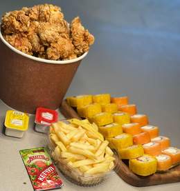 Чикен 20шт Филадельфия 10шт Цезарь 10штВ подарок фри