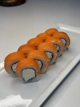 Ролл с мягким сливочным сыром, лососем и тонким листом нори, обернутый нежным рисом.