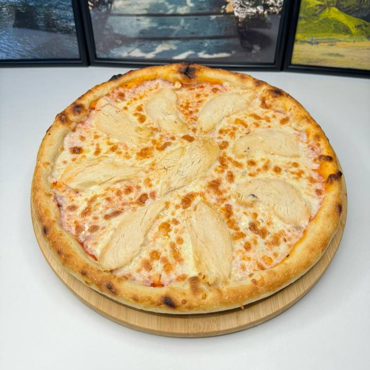 Тонкое тесто, сочные кусочки курицы, нежный сыр, томатный соус.