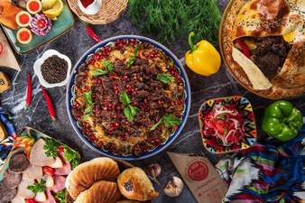 Говядина, плавленный сыр, свежие помидоры, завернутые в лаваш и запеченные в тандыре