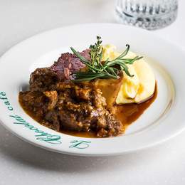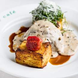 Вырезка телятины на гриле с картофельным граненом под перечным соусом