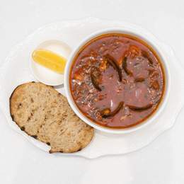 Яичница из двух яиц, две фермерские куриные колбаски, картофельный драник и томат гриль. Подается с ремесленным бездрожжевым хлебом тартин, огурцами кимчи, жареными шампиньонами и тушеной красной фасолью.