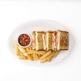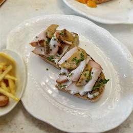 Клаб-сэндвич с курицей и пастрами, с острым айоли (подается с