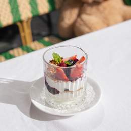 Молочная рисовая каша со свежими ягодами, миндальными слайсами и семенами чиа