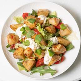 Хрустящий цыпленок с катофелем, сальсой и копченным йогуртом