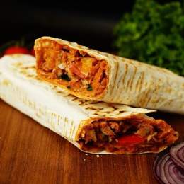 Сочное мясо шашлыка с овощами и чипсами в хрустящей лепешке