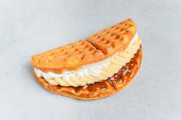 Широкие, воздушные, мягкие Бельгийские вафли в Южнокорейском стиле. Состав: вафли, сливки, карамель, банан