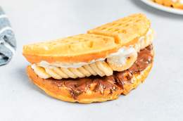 Широкие, воздушные, мягкие Бельгийские вафли в Южнокорейском стиле. Состав: вафли, сливки, нутелла, банан
