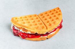 Широкие, воздушные, мягкие Бельгийские вафли в Южнокорейском стиле. Состав: вафли, сливки, джем