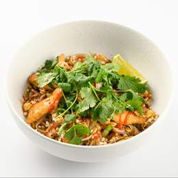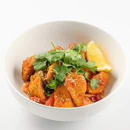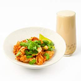 Курица в соусе "Динамит", кокосовый молочный чай с тапиокой