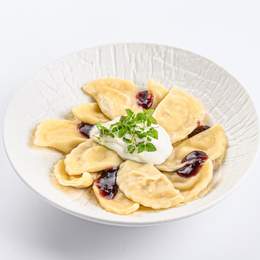 Нежные вареники с рикоттой и корицей, со сметаной и ягодным джемом