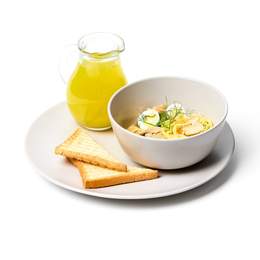 Классический омлет с ветчиной, кокосовый молочный чай с тапиокой