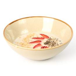 Рисовая каша кокосовым молоком с добавлением сезонных ягод, смен чиа и миндальными слайсами