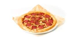 Пепперони – блюдо, на основе дрожжевого теста, начиненным томатным соусом, а также салями халяль посыпанным острым перцом халапеньо , на основе сыров Моцарелла и Гауда. (посыпается специя Орегано)