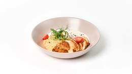 котлетки из индейки, картофельное пюре, сливочный соус, микс салат