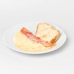 Омлет с сыром страчателла, хлеб тартин, томат, сыр "Пармезан"