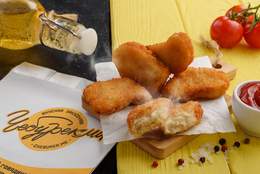 Хрустящее тесто, фарш из мраморной говядины. Хедлайнер нашего меню - сочный чебурек с мраморной говядиной. Мраморная говядина и наваристый сок не оставят равнодушными истинных ценителей мясных чебуреков
