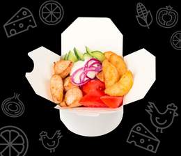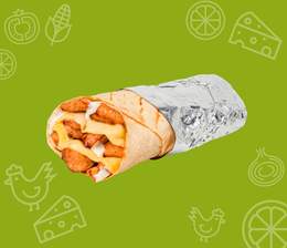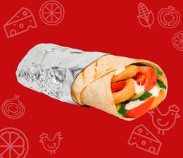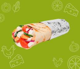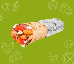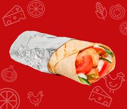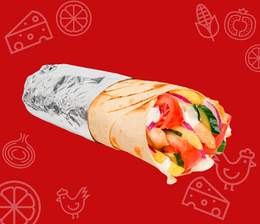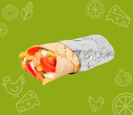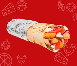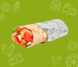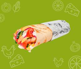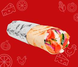 Хрустящий лаваш, кусочки сочной курицы, свежий огурец и помидор, маринованные огурчики и фирменный соус