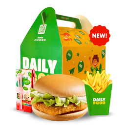 Кидсбокс Чикенбургер — идеальный набор для маленьких гурманов: мини чикенбургер, картофель фри, детский сок, игрушка, салфетка 3в1 и кетчуп. Радуем ваших малышей вкусным и удобным обедом.