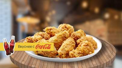 дважды больше аппетитных куриных крылышек, 800 г удовольствия! Хрустящие снаружи, сочные внутри — для настоящих ценителей куриного вкуса.