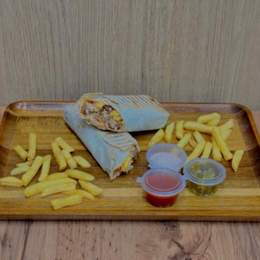 Ароматные сочные кусочки мяса и куриного филе, обжаренные на вертикальном гриле, малосольное огурцы и фри, сдобренные пикантным соусом, плотно завернутые в аппетитный рулет из лаваша