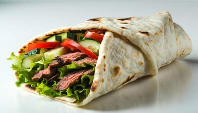 Ароматные сочные кусочки мяса, обжаренные на вертикальном гриле, малосольные огурцы и фри, сдобренные пикантным соусом, плотно завернутые в аппетитный рулет из лаваша