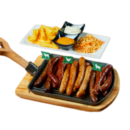 куриные,говяжьи,бараньи колбаски,подаются с квашеной капустой и картофельными лодочками,с горчичным и чесночным соусами