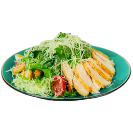 куриное филе,салат айсберг,сыр пармезан,перепелиное яйцо,помидоры черри,крутоны,соус цезарь