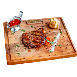 рибай без кости,подается с запеченым картофелем и соусом барбекю