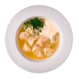 пельмени с говяжим фаршем подаются с бульоном и сметаной
