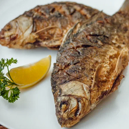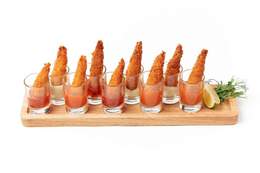 Тигровые креветки в панировочных сухарях обжареные во фритюре , подаются с чесночным и чили соусами (9шт)