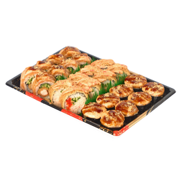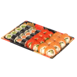 Ролл филадельфия , ролл Калифорния surimi , ролл Хосомаки лосось , ролл Хосомаки огурец , Coca-cola 1л