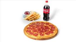 Пицца пепперони 32 см , картофель фри , Coca- Cola 1л , соус чесочный , соус кетчуп