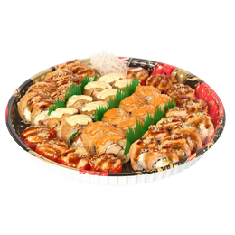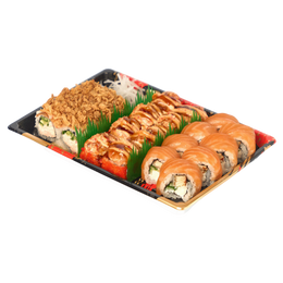 ролл Филадельфия Люк, ролл Калифорния Микс , ролл креветка Авокадо, ролл Crishy Chicken, сашими Лооь, Татаки, Креветка spicy, ролл Spicy хосомаки лосось, Coca-cola 1л