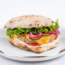 Неополитанское тесто, кетчуп, майонез, лист салата, помидор, огурец маринованный, лук маринованный, сыр чедер, котлета говяжья. Неополитанское тесто, кетчуп, майонез, лист салата, помидор, огурец маринованный, лук маринованный,чедер, котлета куриная.