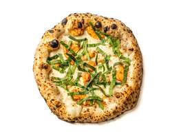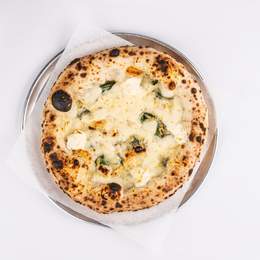 Неополитанское тесто, сливки, моцарелла, соус баже, куриное филе, шпинат,сулугуни