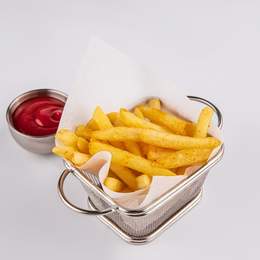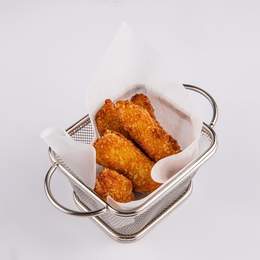Неополитанское тесто, кетчуп, майонез, лист салата, помидор, огурец маринованный, лук маринованный, сыр чедер, котлета куриная.
